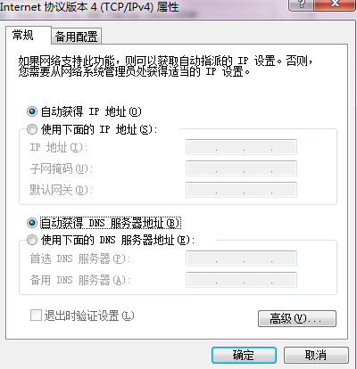 若电脑直连网口,请将您电脑网卡中Internet协议版本4内的IP地址及DNS地址设置为“自动获取”,如下图1所示: