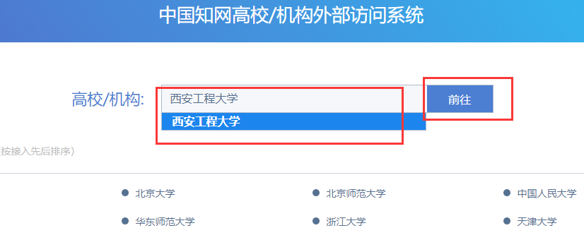 二、在页面上的“选择高校/机构”下拉框中输入并选择“新葡的京集团350vip8888官网”,点击“前往”。