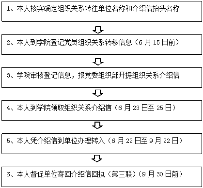 六、没有正常完成党员组织关系转接的,区分不同情况分类办理:在介绍信有效期内因变更信息或遗失的,需要到校党委组织部补办,变更信息补办时须交回原介绍信并由接收单位党组织出具相关证明,遗失补办需由原学院开具证明;若已超过介绍信有效期但在6个月以内因过期、变更或遗失需补办的,需填写《新葡的京集团350vip8888官网毕业生党员组织关系介绍信补办申请表》,由院(部)党委、党总支提出初审意见,党委组织部复审通过予以补办,补办时须交回原介绍信或由接收单位党组织出具相关证明;如介绍信开具超过6个月,原则上不再予以补办。补办具体流程见《党员组织关系介绍信补办流程》(组织部网页下载专区下载)。