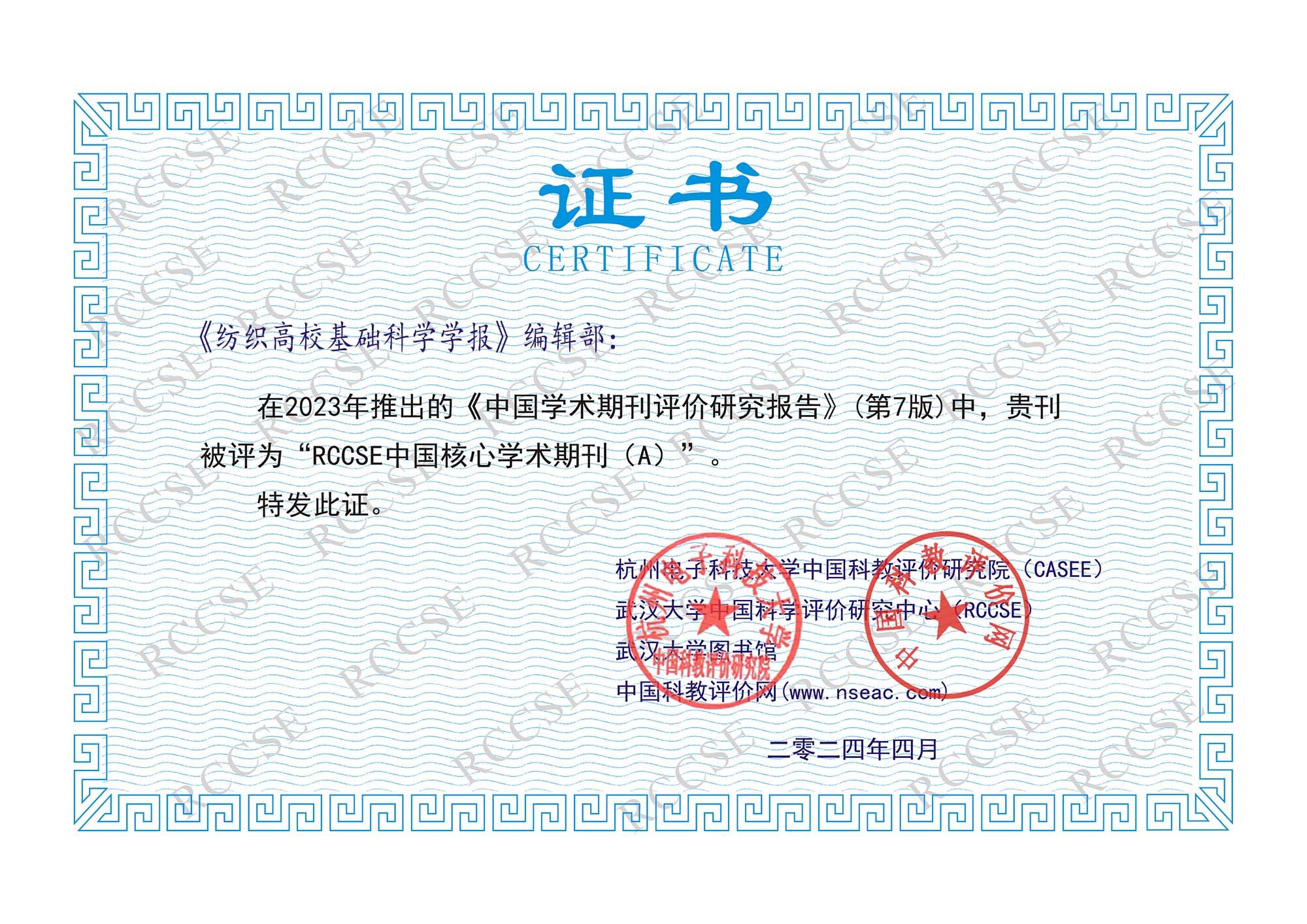 近日,武汉大学中国科学评价研究中心(RCCSE)公布了最新一期的学术期刊评价结果《中国学术期刊评价研究报告(第7版)》,我校《新葡的京集团350vip8888官网学报》《纺织高校基础科学学报》双双被评为“RCCSE中国核心学术期刊(A)”, A级代表学科领域排名前5%~20%的期刊。