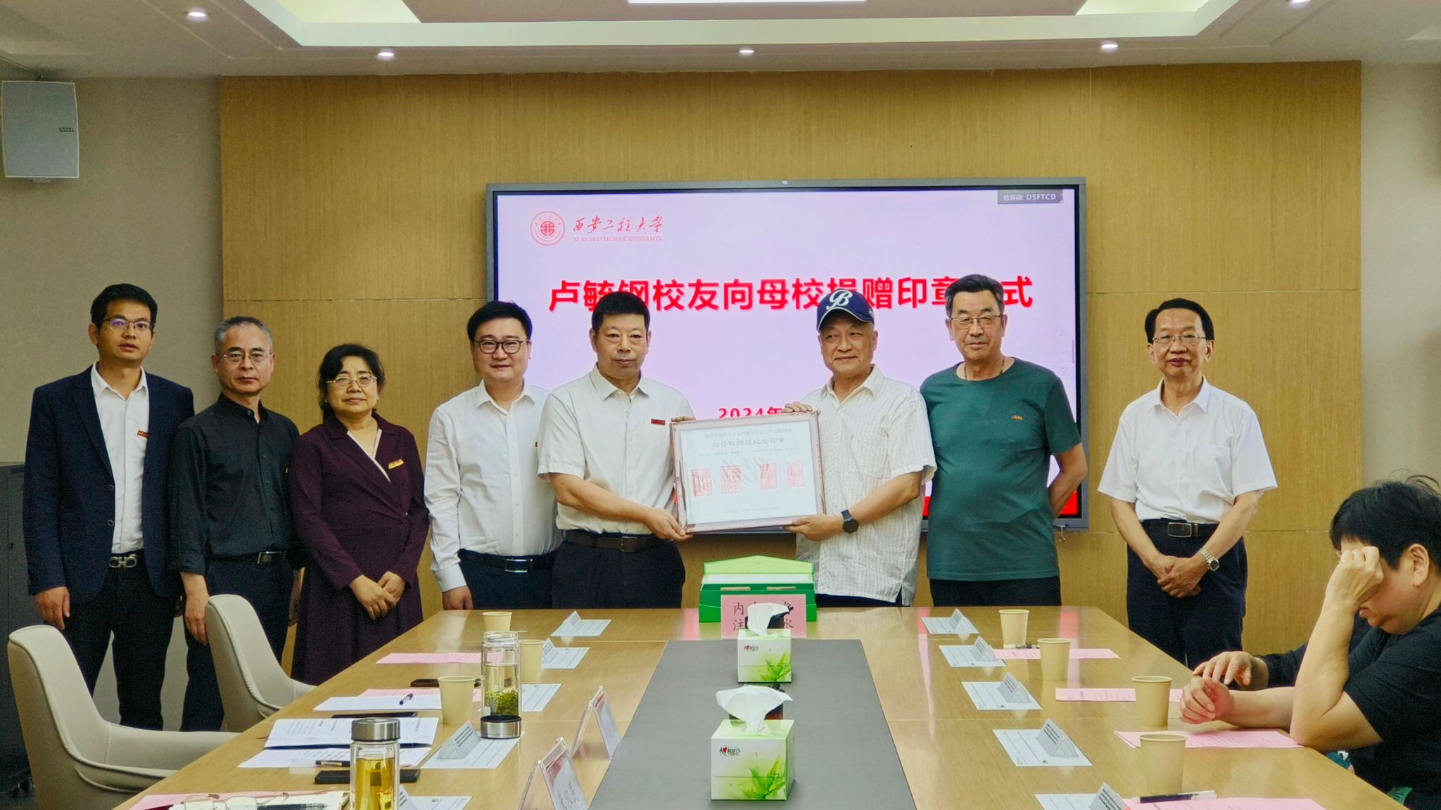 会上,兰州大学图书馆原馆长卢毓钢校友将他篆刻的“厚德弘毅 博学笃行”的校训和“崇真尚美 经纬天下”的大学精神印章(共四枚)捐赠给母校,祝愿母校明天更美好!