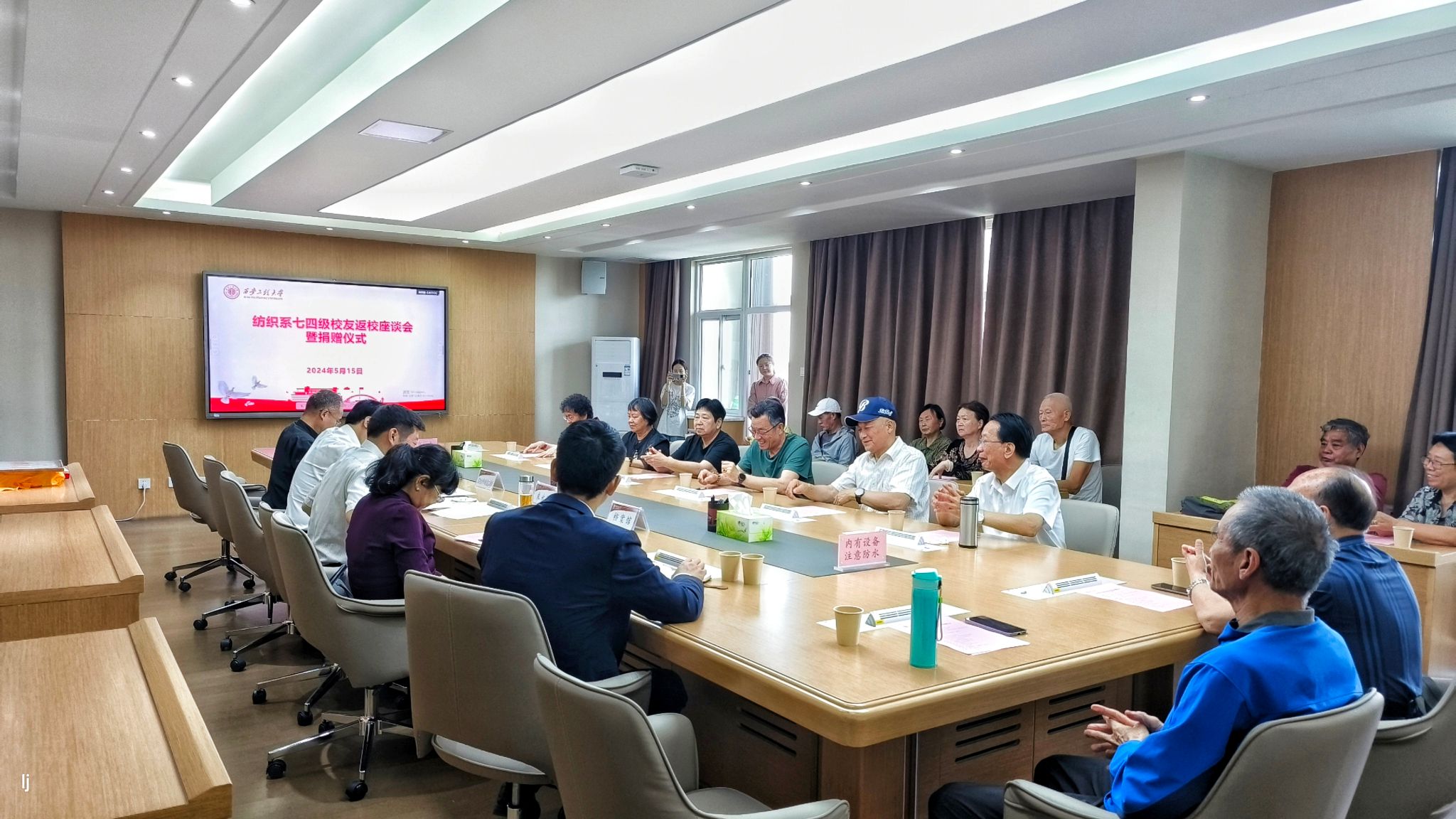 5月15日,我校15名纺织系1974级校友入学50周年返校座谈暨捐赠仪式在临潼校区第三会议室召开,老校友们重走青春路、重续同学情,追忆往昔、展望未来。副校长朱永民,档案馆馆长袁群及国内合作与校友工作处相关人员参加了座谈会,会议由国内合作与校友工作处处长郭可义主持。