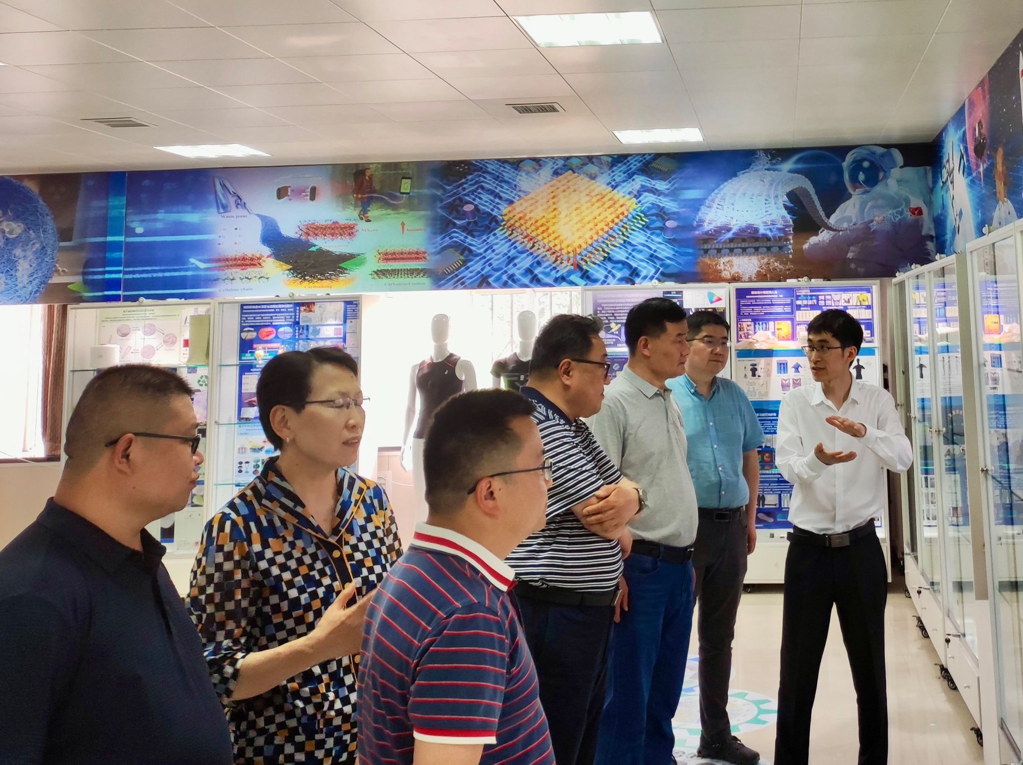 会前,崔振忠一行参观了我校功能性纺织材料及制品教育部重点实验室及汉服研究院。