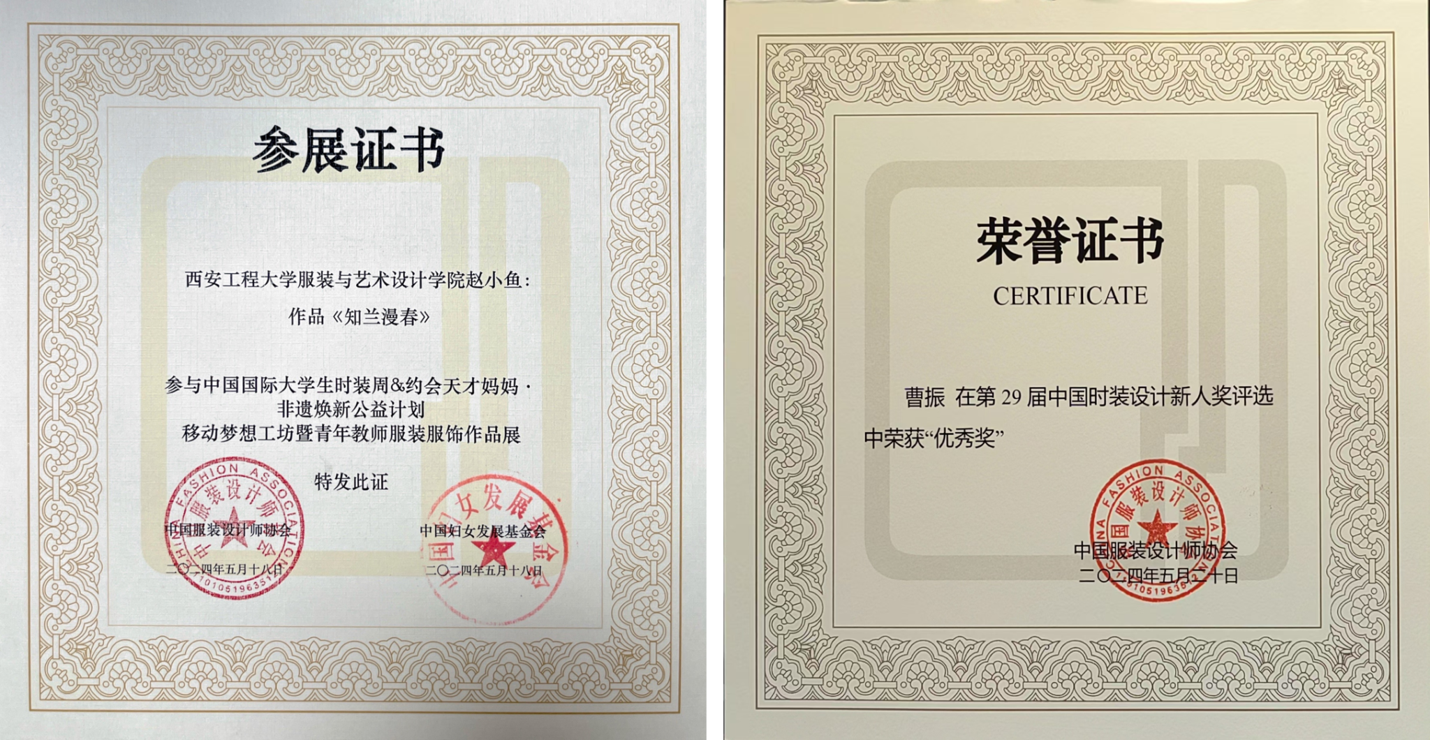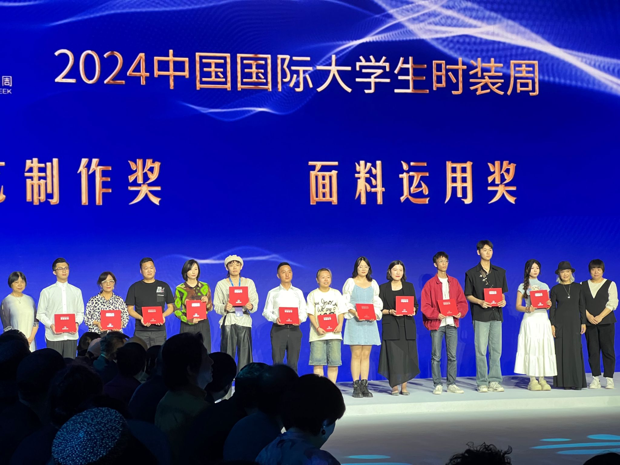 5月15日至20日,2024中国国际大学生时装周在北京隆重举行,校党委书记马万清、副校长戴鸿出席我校毕业生设计作品专场发布会。我校服装与艺术设计学院荣获“2024中国国际大学生时装周人才培养成果奖”,2020级服装与服饰设计卓越班熊子傲同学荣获工艺制作奖,2020级服装与服饰设计3班曹振同学荣获“第29届中国时装设计新人奖评选优秀奖”。