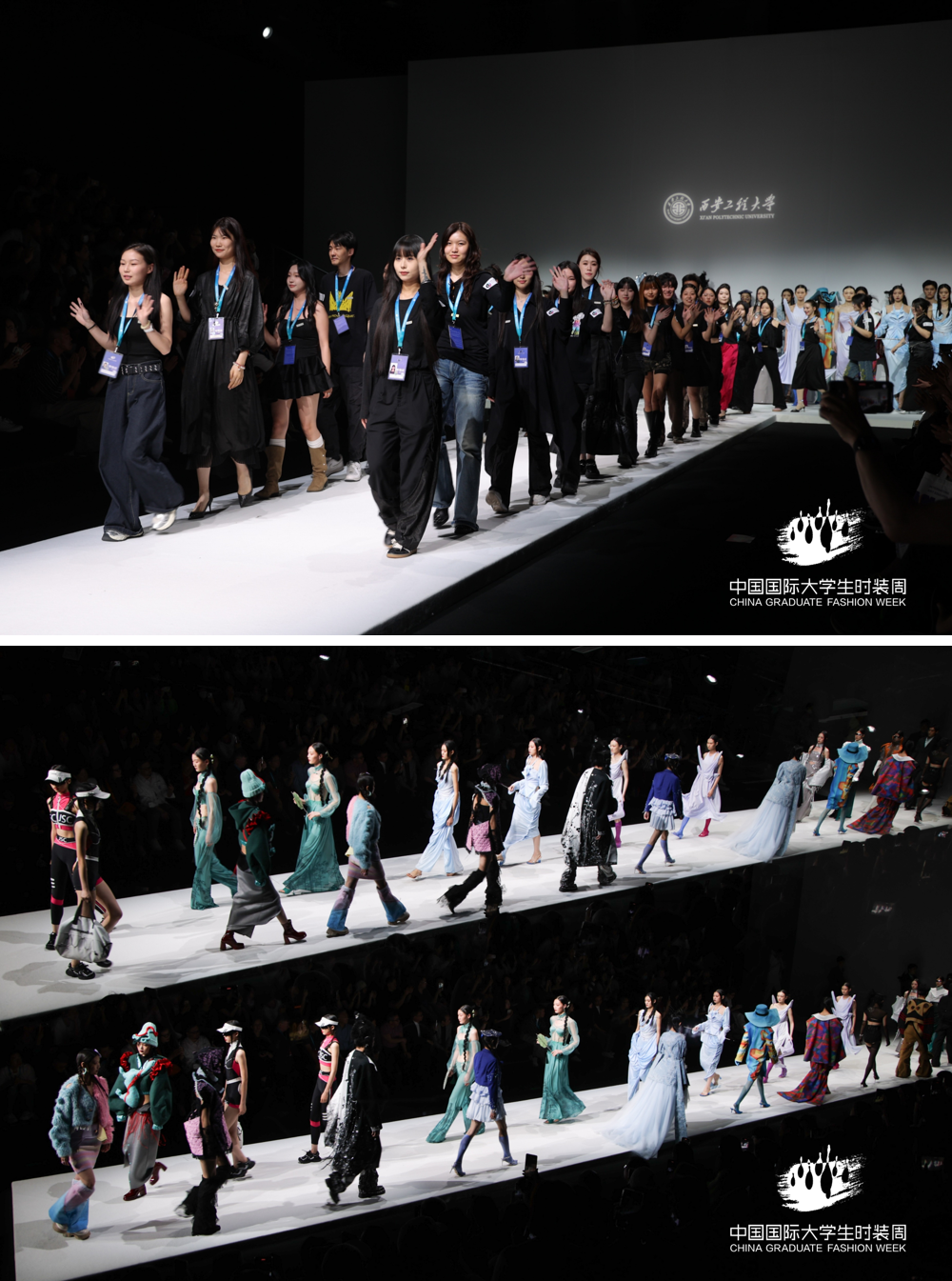 我校本次秀展主题为《共生》,展出了服装学院服装与服饰设计、服装表演、服装设计与工程专业的47名毕业生创作的86套优秀作品。作品灵感源自中国古朴哲学概念,体现多元共存,秉承兼容之道,旨在表达汉唐文化与异族文化的交织,多种丰富文化共生的繁荣景象。同时坚持传承与创新,将“共生”作为多元文化的精髓,诠释新生代的审美诉求。发布会现场座无虚席,精彩纷呈,掌声雷动,发布会结束后服装学院党政负责人、教师与现场嘉宾和观众进行了交流,大家纷纷给予高度赞赏。