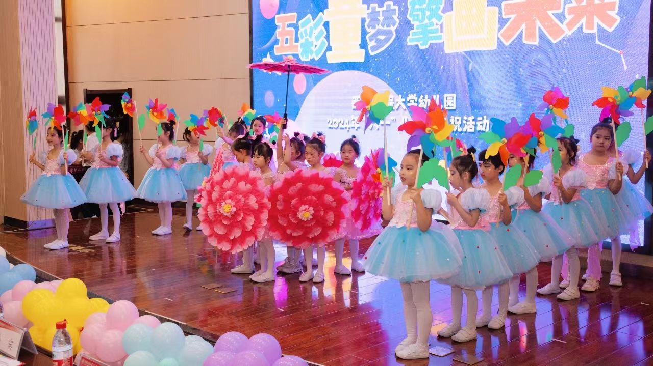 精彩六一,共享欢乐,在第74个“六一”国际儿童节来临之际,我校幼儿园积极响应全国学前教育宣传月主题“守护育幼底线,成就美好童年”,于2024年5月31日上午,在金花校区隆重举行了“五彩童梦 擘画未来”六一儿童节庆祝活动。校党委书记马万清表达了对全体小朋友们节日的慰问和祝福。校长王海燕、校党委副书记殷永建出席了活动,相关职能部门和学院负责人以及幼儿园全体小朋友、家长、老师共同参加了庆祝活动。