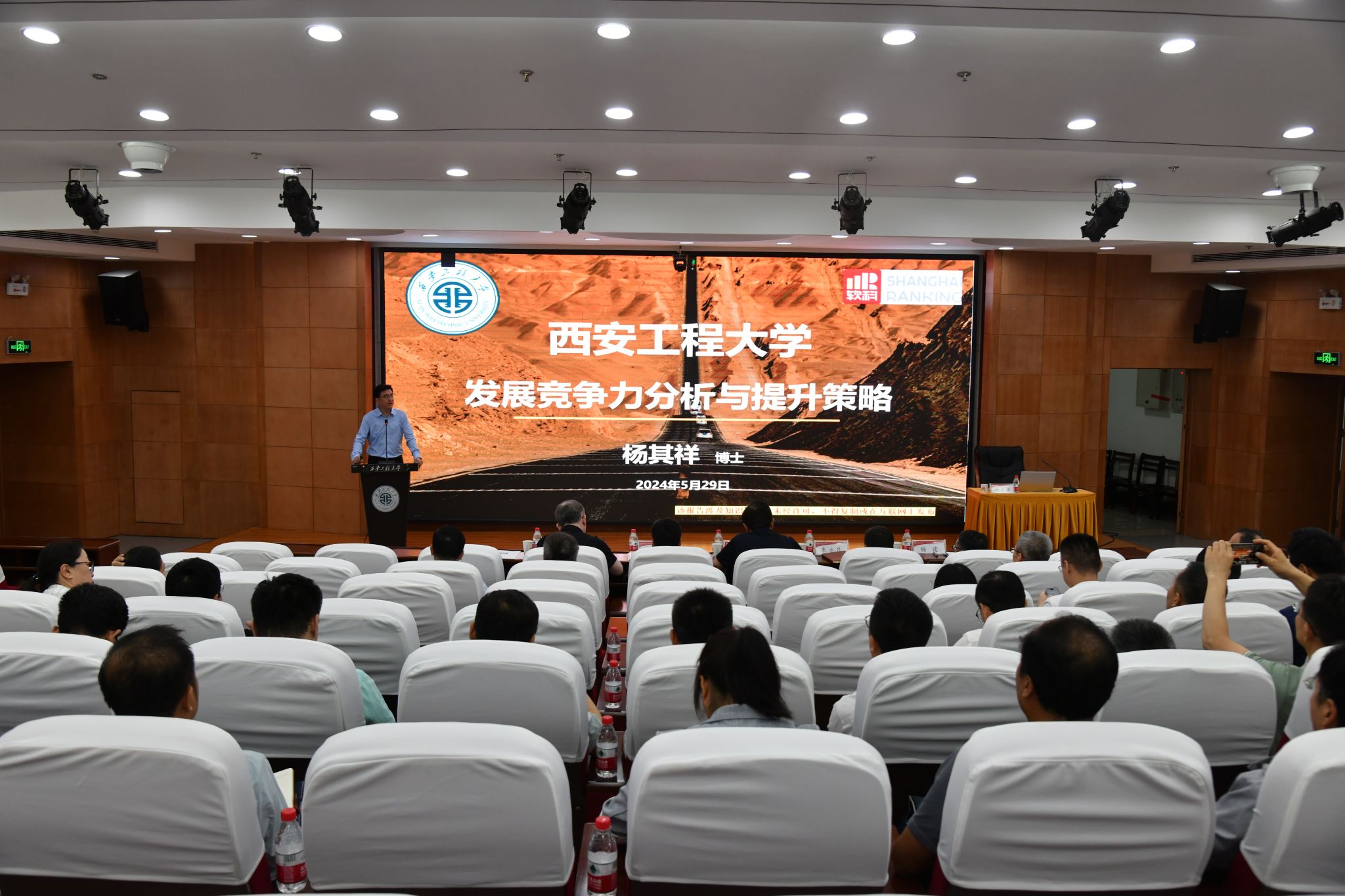 5月29日,我校在临潼校区图书馆一层报告厅召开软科专题报告会,邀请上海高绩数据科技有限公司资深咨询顾问、高级研究员杨其祥博士来校作《新葡的京集团350vip8888官网发展竞争力分析与提升策略》专题报告会。校长王海燕出席报告会并讲话,党委副书记、纪委书记辛永昌,副校长朱永民、戴鸿、杨建出席报告会。报告会由戴鸿主持。