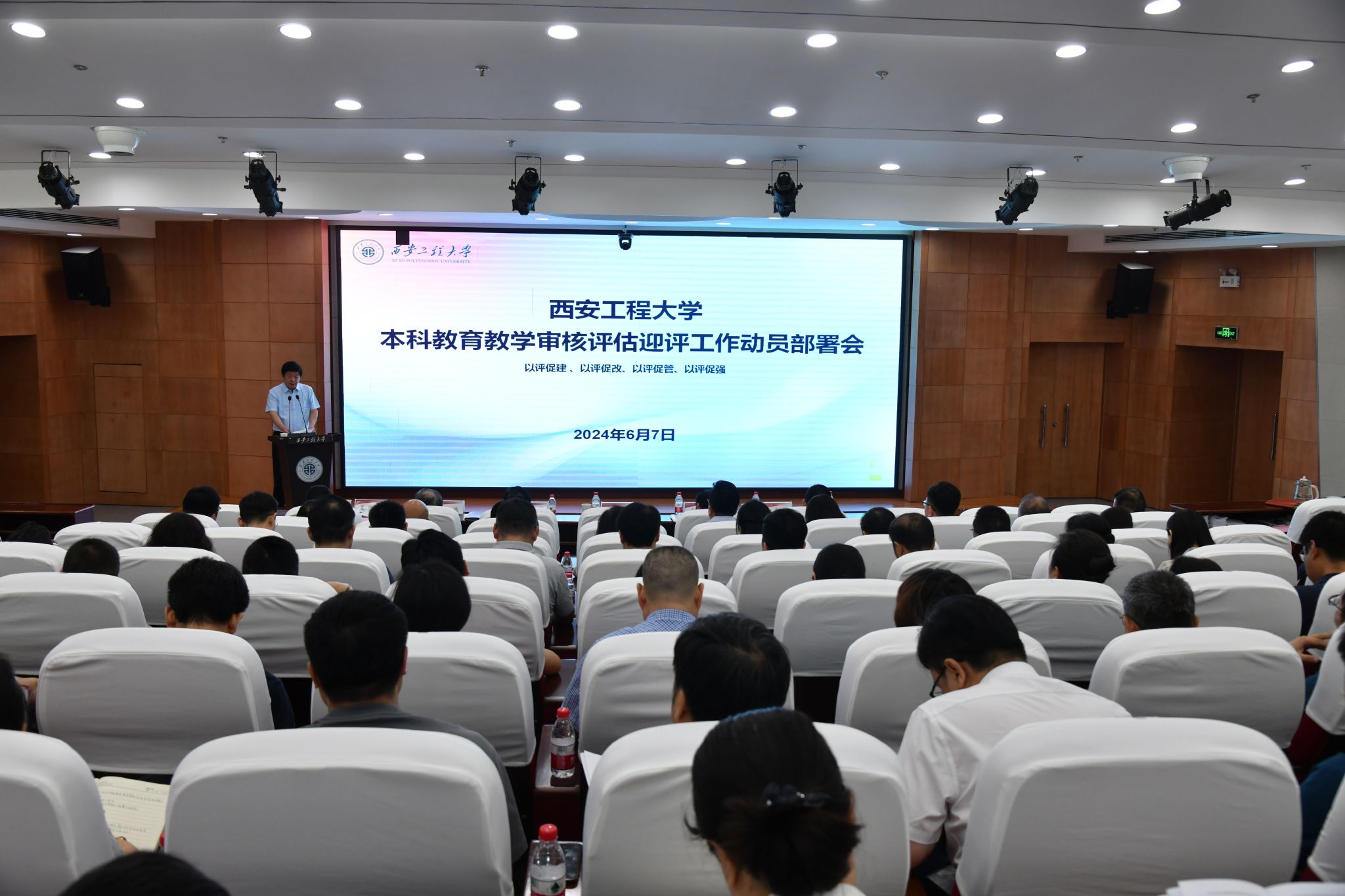 6月7日,我校在临潼校区图书馆一楼报告厅召开本科教育教学审核评估迎评工作动员会,校领导王海燕、辛永昌、殷永建、朱永民、戴鸿、夏蔡娟、杨建出席本次会议,各职能部门负责人、教学单位党政领导班子以及系(教研室)主任共计200余人参加会议,会议由副校长夏蔡娟主持。