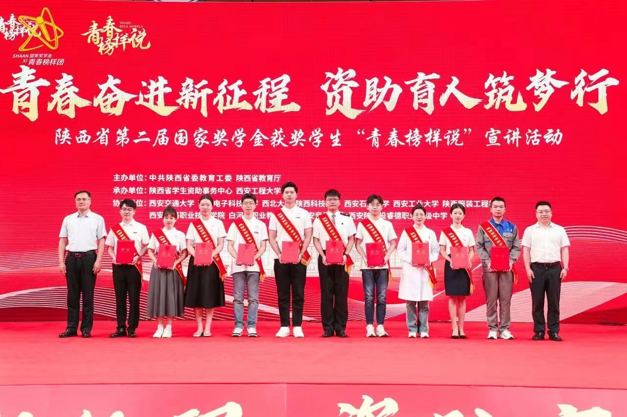 6月13日,由省委教育工委、省教育厅主办,省学生资助事务中心和我校承办的陕西省第二届国家奖学金获奖学生“青春榜样说”宣讲活动在临潼校区文体馆举行。教育部全国学生资助管理中心副主任涂义才出席活动并致辞,全国学生资助管理中心信息处处长焦旭出席活动;省委教育工委委员、省教育厅副厅长何玉麒出席活动并讲话。我校校长王海燕致欢迎辞,党委副书记殷永建、副校长杨建出席会议。