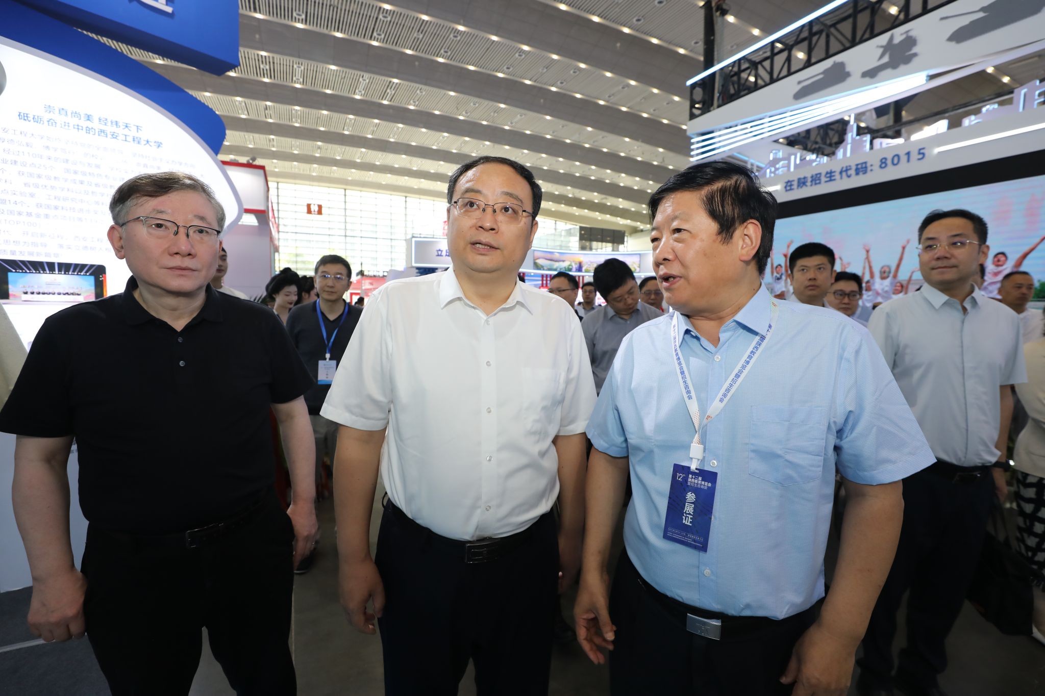 6月24日至26日,由陕西省委教育工委、省教育厅主办的第十二届陕西教育博览会暨招生咨询会在西安国际会展中心隆重举行。我校在会展中心1号馆显著位置设立展厅,省教育厅厅长王树声等领导到场参观指导;校长王海燕、副校长戴鸿到展区指导工作并慰问工作人员和学生志愿者,副校长夏蔡娟实地检查展厅建设情况,相关单位负责人参加活动。