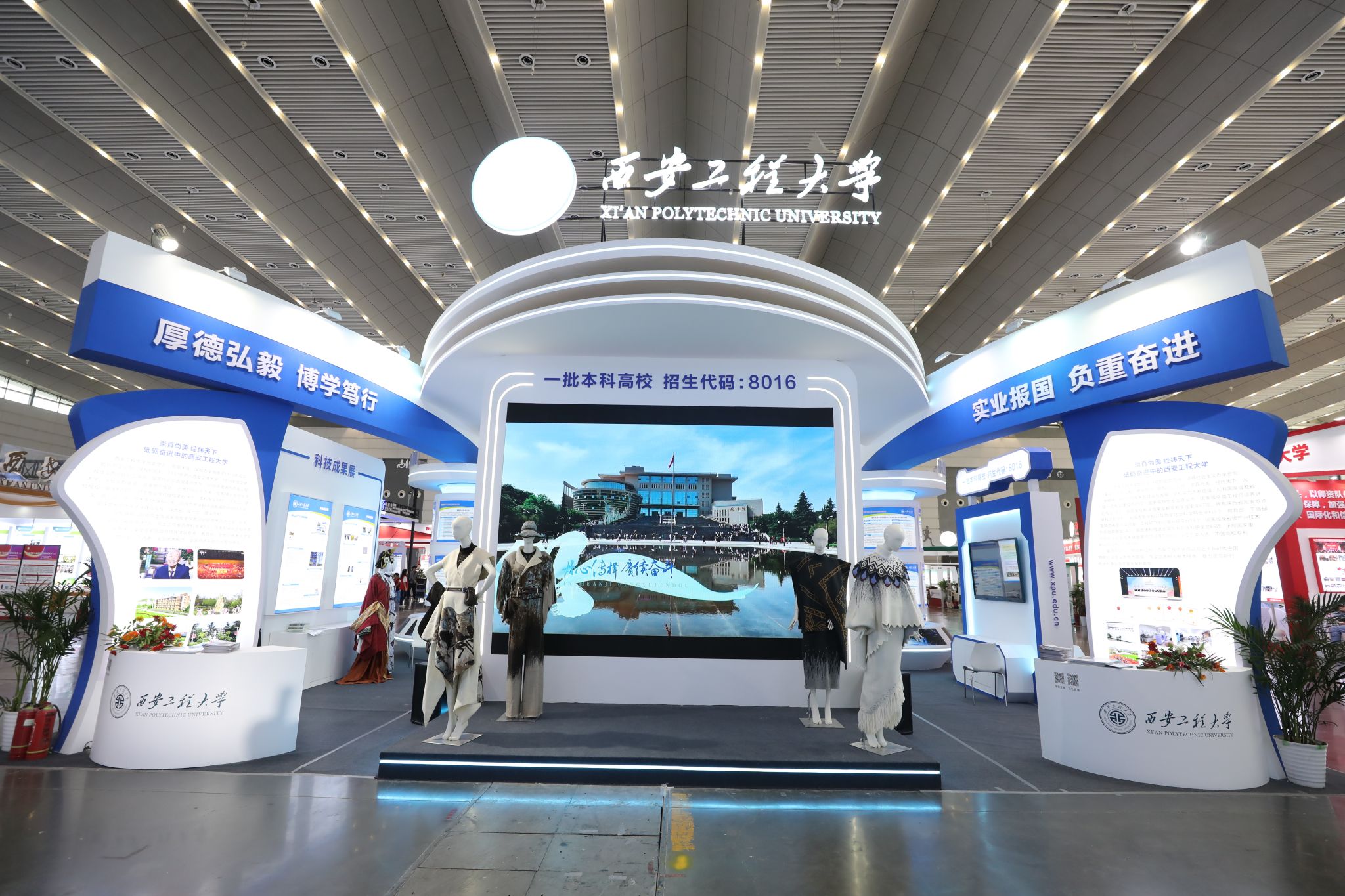 我校展厅通过展板、实物、新媒体等多种载体全面展示了在学科建设、教育教学、师资队伍、科技创新、国内外合作交流、校园文化等方面取得的丰硕成果。在科技成果展区,我校近年来荣获的国家级、省部级标志性成果以图文形式展示,功能性纺织材料及制品教育部重点实验室展出了在新材料领域取得的最新科研成果,机器人团队现场炫技,彰显出我校独特的学科特色和“纺织+”“设计+”“智能+”的科研实力,展现了我校在重点领域科研攻关、服务社会经济发展、深度融入秦创原创新驱动平台建设等方面的突出成绩。在研究生创新成果展区,我校共推荐15项研究生创新成果作品参加展览,由各团队成员代表进行讲解和演示。作品主要为研究生在学期间原创性的科技创新实物作品、高水平学术论文及文创产品等,部分参展作品曾在国家和省级比赛中获奖。在校企对接洽谈会上,我校面向观展企业、单位进行成果和需求对接,与陕西美兰德新材料股份有限公司签订了《碳陶系列产品碳纤预制体针刺工艺及织造新技术开发合同》。