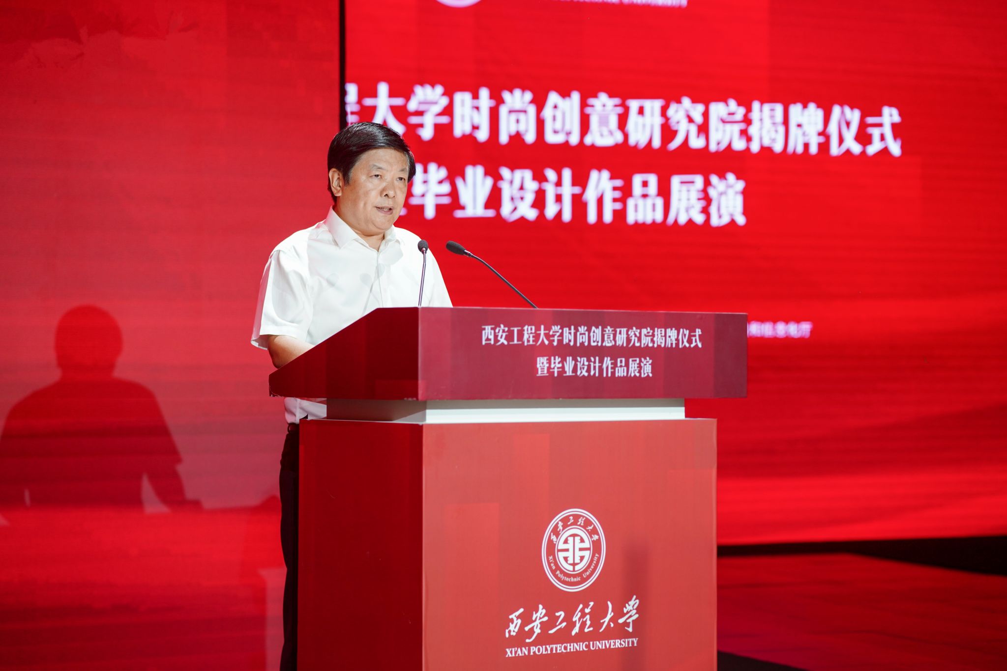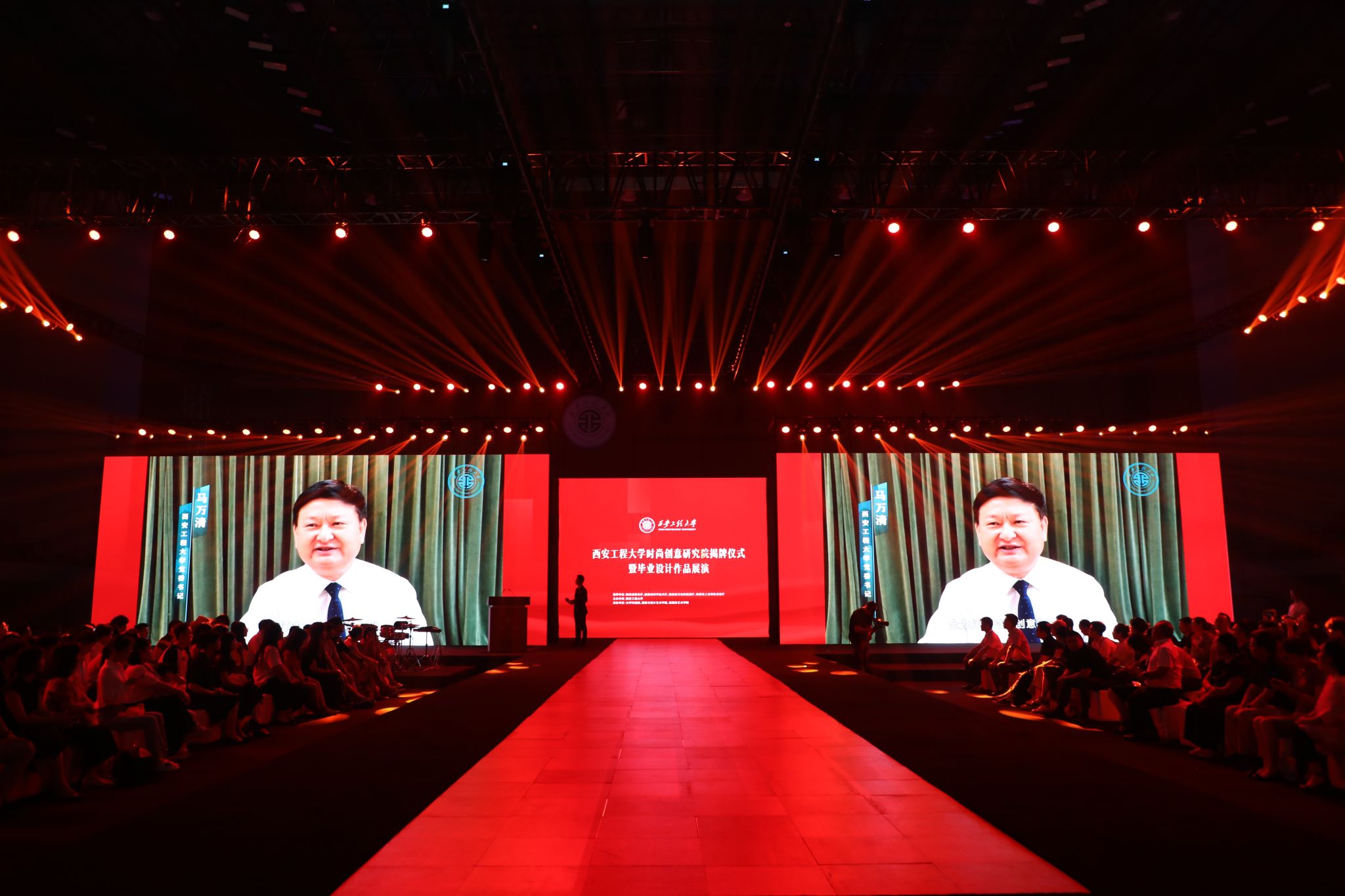 6月26日晚,我校时尚创意研究院揭牌仪式暨毕业设计作品展演活动在临潼校区文体馆隆重举行,省委教育工委、省教育厅二级巡视员高巍,中国纺织出版社有限公司党委书记、董事长郑伟良,中国无线电委员会副秘书长贾旭安,西安市碑林区政府党组成员、副区长王菲,西安市新城区政府副区长李枫艳,西安市临潼区政府副区长薛凡,视觉(中国)文化发展股份有限公司副总裁王钧,中国服装设计师协会专职副主席谢方明等领导出席活动。我校党委书记马万清发表视频寄语,校长王海燕致辞,在校校领导辛永昌、殷永建、朱永民、戴鸿、夏蔡娟,陕西科技大学、西安工业大学、西安建筑科技大学等兄弟院校艺术设计学院负责人,我校1500余名师生共同参加活动。