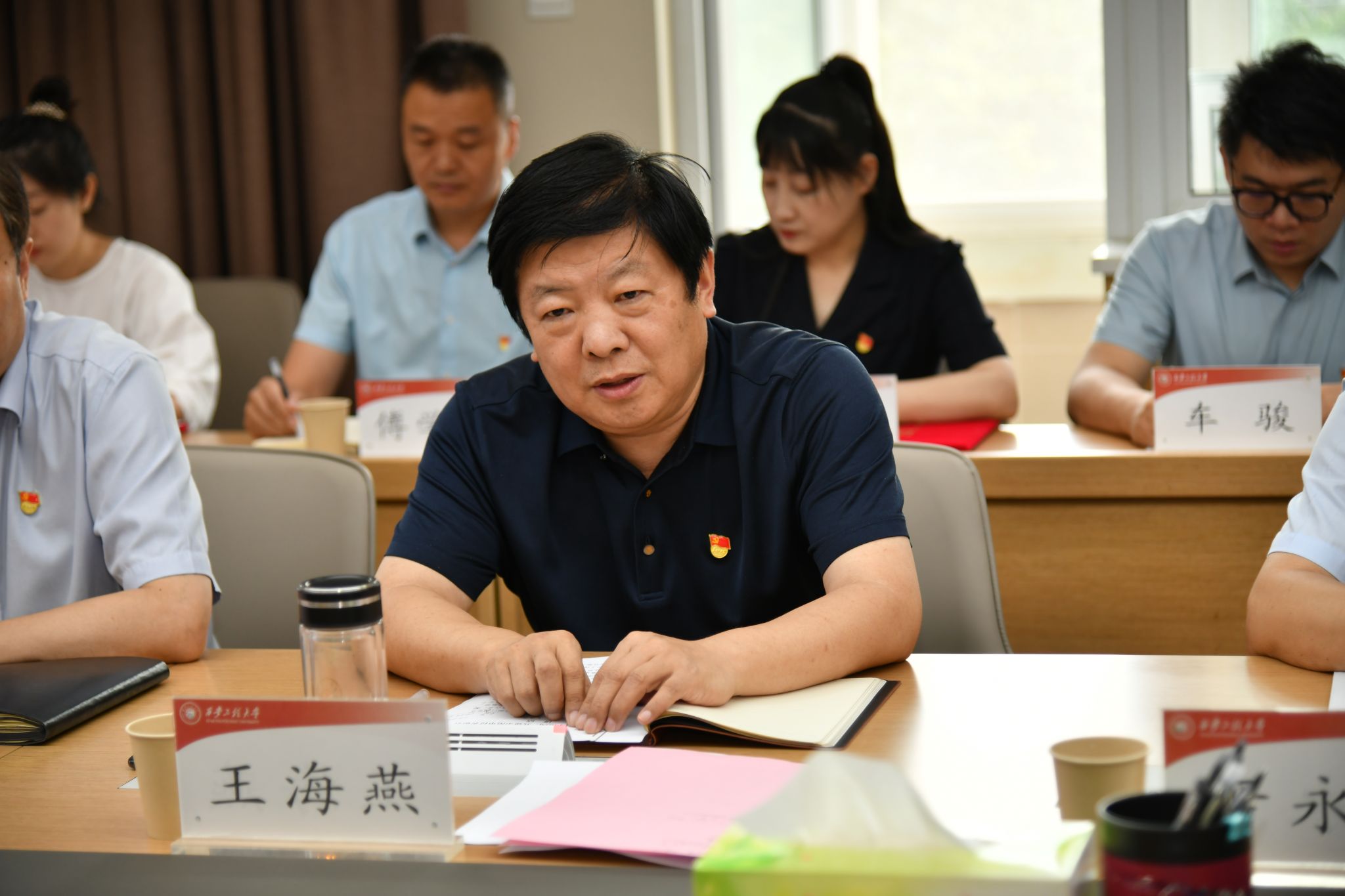 王海燕在讲话中向获得表彰的集体和个人表示祝贺,并对我们当前和今后工作提出三点要求,一是赓续传承,持续加强作风建设。要抓好日常,把作风建设时刻摆上位置、有机融入日常工作,做到管事就管人,管人就管思想、管作风。要抓好经常,反复抓,驰而不息、久久为功。二是善于学习,着力提高履职本领。持续提升学习能力,用党的创新理论来武装头脑,主动强化实践锻炼、专业训练,增强推动高质量发展本领,在知重负重中磨砺干事成事的硬功夫。三是敢于担当,展现奋发有为气象。践行正确政绩观,坚持守土有责、守土负责、守土尽责,在推动高质量发展上和服务师生上展现新担当新作为,在干实事、办好事中让师生看到变化、得到实惠。全体党员要以先进典型为榜样,营造人人学先进、赶先进、当先进的浓厚氛围,凝心聚力、攻坚克难、勇于担当、善作善成,脚踏实地做好教学科研管理工作,高质量完成本科教育教学审核评估,及时梳理总结上半年工作,及早谋划好下半年的各项工作,奋力谱写学校高质量发展新篇章。