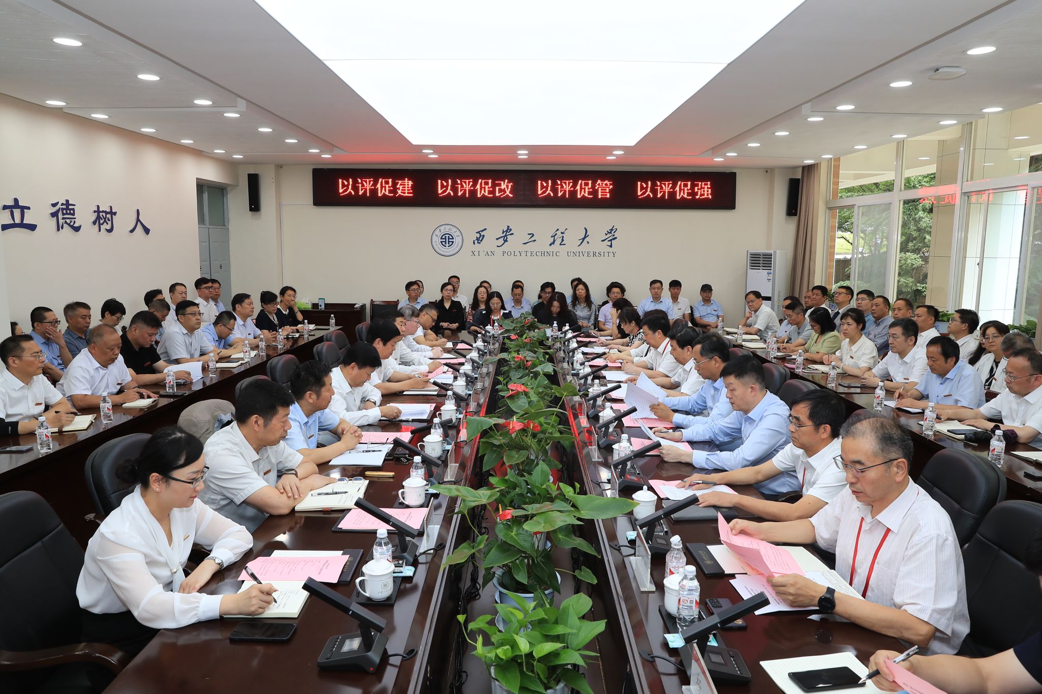 7月5日下午,我校在临潼校区教学楼A座会议室召开本科教育教学审核评估专家意见交流会。审核评估专家组组长、大连理工大学原副校长李志义教授,副组长、江苏理工学院原党委书记朱林生教授及专家组全体成员陈革教授、王霞教授、姜明华教授、张美云教授、李树刚教授、李丽娟教授,省委教育工委、省教育厅二级巡视员高巍,高等教育处副处长杨鹏,中国西部教育评估中心副主任徐菲,学校全体在校校领导马万清、王海燕、辛永昌、殷永建、朱永民、戴鸿、夏蔡娟、杨建,各职能部门负责人、各学院(部)党政负责人及分管本科教学工作副院长、本科教学质量督导团团长等参加会议。会议由朱林生教授主持。