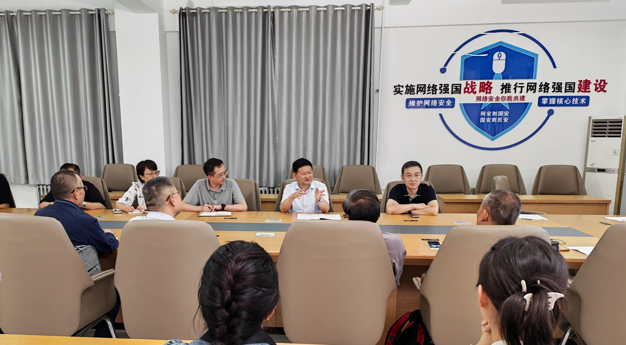 马万清与全院教职工进行交流,他回顾了从陕西省网络安全学院建设示范项目获批到网络安全学院正式成立的发展历程,他指出,学院的成长始终凝聚着校党委的殷切期望和全力支持,希望网络安全学院全院上下凝心聚力、团结协作,不辜负学校信任与重托,聚焦人才培养核心任务,努力打造西北地区高水平、特色化的网络空间安全人才培养基地。