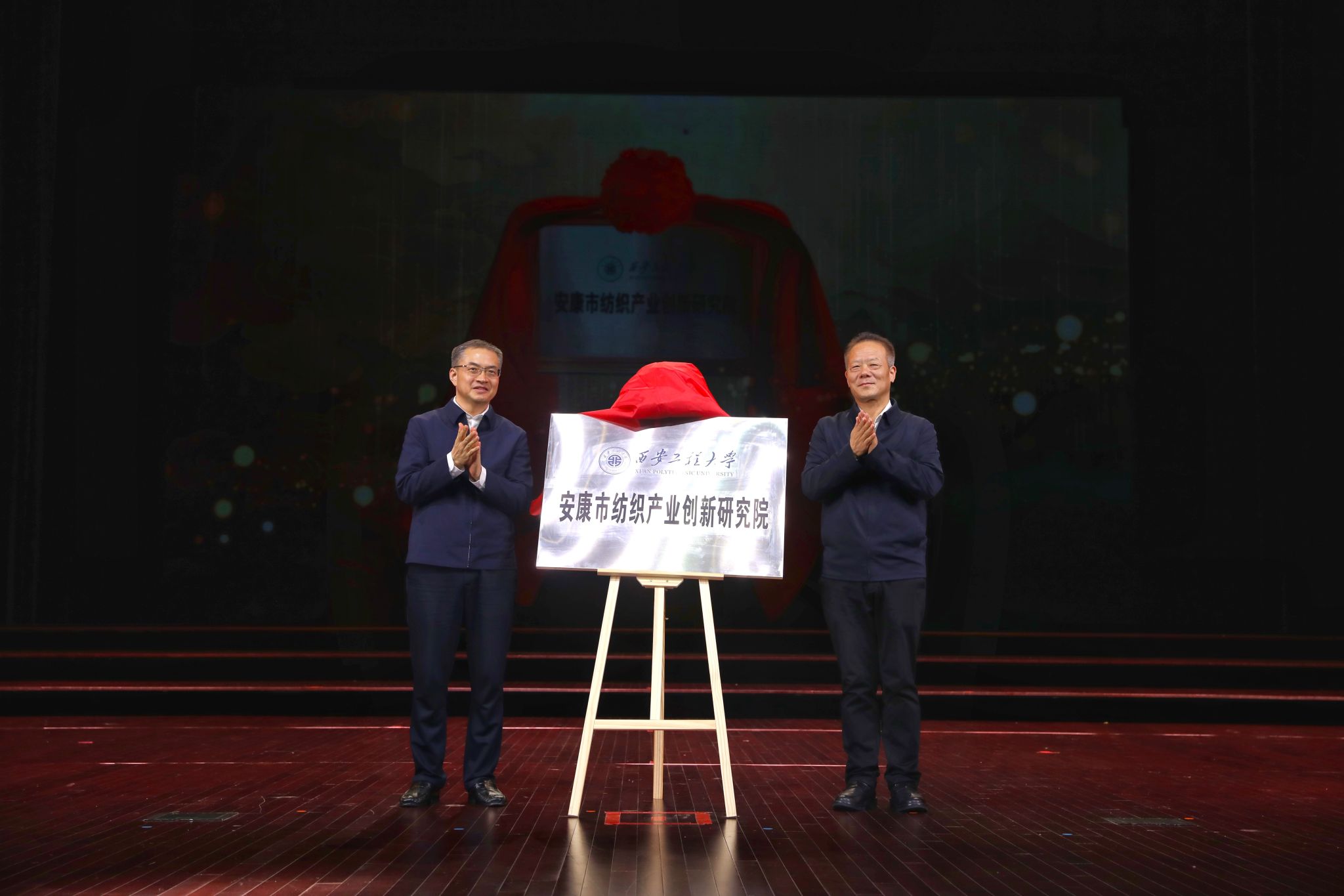 颁奖活动上,我校与安康市共同成立“纺织产业创新研究院”,王浩、张志昌为研究院揭牌。研究院将通过校地共商共建,整合产业链上中下游资源,打造多功能一体的高水平创新平台,推动区域经济高质量发展。