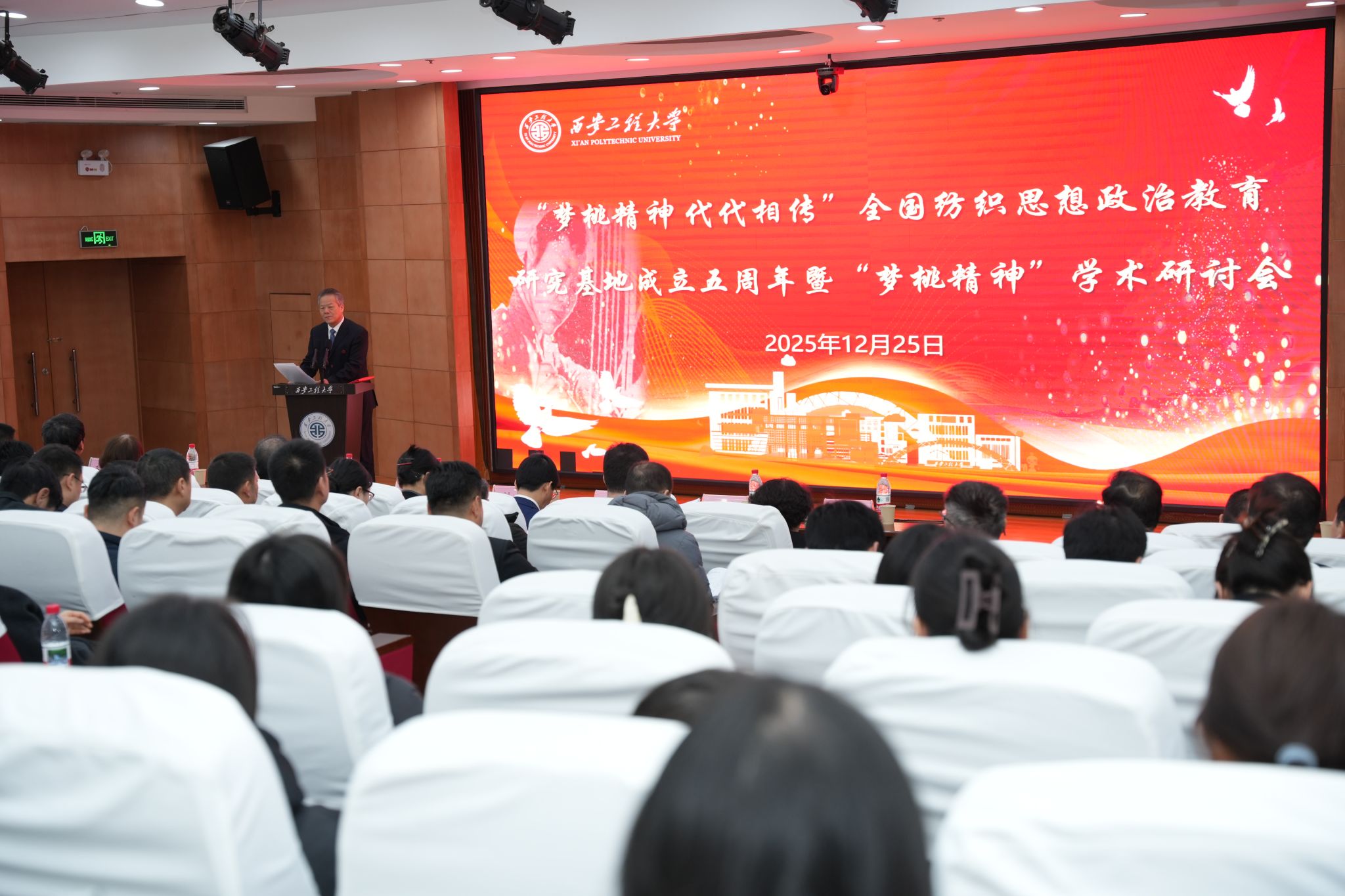 12月25日,“梦桃精神 代代相传”全国纺织思想政治教育研究基地成立五周年暨“梦桃精神”学术研讨会在我校临潼校区举办。本次会议由中国纺织职工思想政治工作研究会、陕西省财贸金融轻工工会、我校联合主办,陕西省纺织职工思想政治工作研究会、我校马克思主义学院、“梦桃精神 代代相传”全国纺织思想政治教育研究基地共同承办,研讨会作为陕西省社会科学界学术活动资助项目,旨在深入学习贯彻党的二十大和二十届历次全会精神,深刻领会并践行习近平总书记对赵梦桃小组的亲切勉励,弘扬以“梦桃精神”为代表的劳动精神、劳模精神、工匠精神,推动新时代高校思想政治教育创新发展。