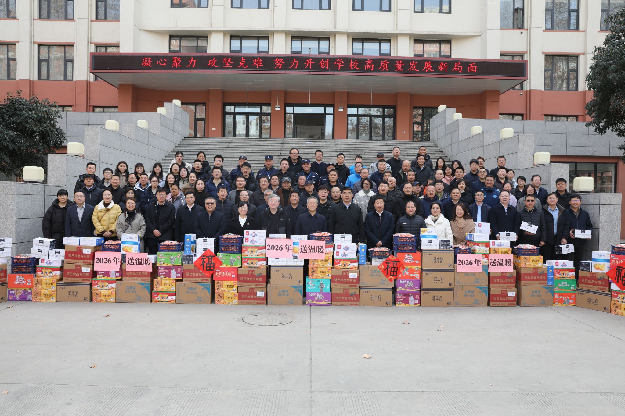 校领导指出,过去一年学校各项事业取得的显著成绩,凝聚着全体教职工的智慧、汗水与无私奉献。春节期间,许多同志舍小家为大家,展现了高度的责任感与奉献精神。希望大家恪尽职守,扎实做好各项假期服务保障与值班备勤工作,全力守护留校师生度过一个欢乐、祥和、平安的春节假期。温暖话语与亲切关怀让一线职工备受鼓舞,大家纷纷表示,将全力保障寒假春节期间校园的正常运转与安全稳定。