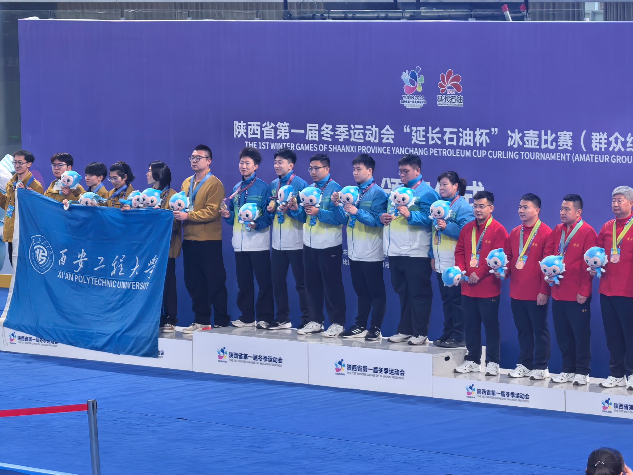 赛场磨砺,冰雪项目实现突破。寒假期间,由李志翔、马保雷、王伟东三位教师带队,我校首支冰壶代表队参加了由陕西省人民政府主办的陕西省第一届冬季运动会,经过一周的角逐,男子队获得银牌、女子队摘得铜牌,学校荣获“体育道德风尚奖”。2月6日,体育部主任张慧、副主任刘卢,以及李志翔、王伟东四位教师,作为高校代表团成员参加陕西省第一届冬季运动会开幕式,两位教师作为裁判员也参加了大赛,共同见证了陕西冰雪运动发展的重要节点。