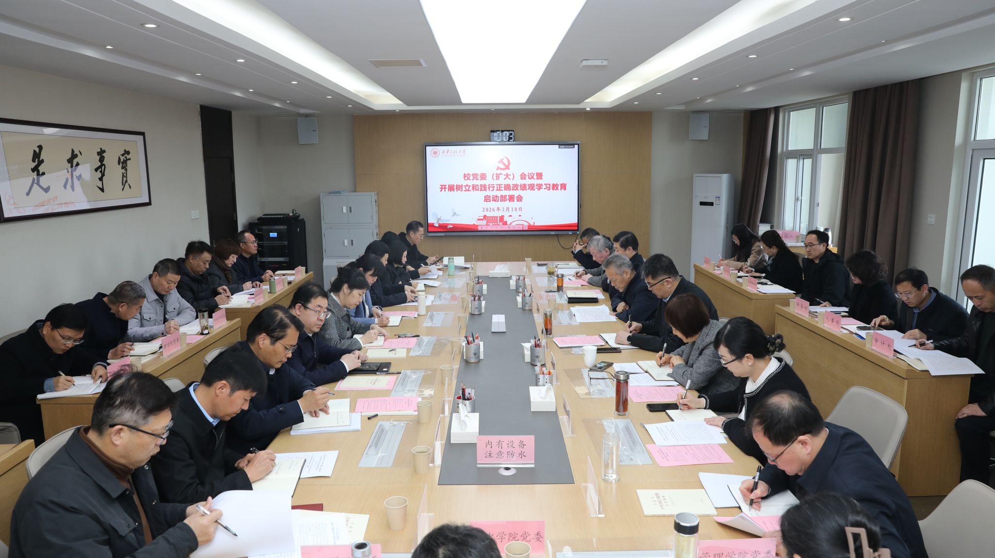 3月10日,我校召开党委(扩大)会议,启动部署树立和践行正确政绩观学习教育。校党委书记张志昌主持会议并作动员讲话。全体校领导、校党委委员、学习教育工作专班成员、各院(部)级党组织书记及相关部门负责人参加会议。