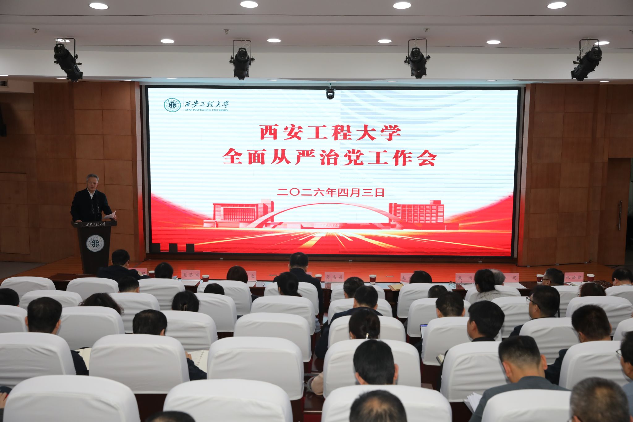 4月3日,我校在临潼校区召开2026年全面从严治党工作会议,省纪委监委第四监督检查室副主任赵晓波出席会议,在校校领导,校党委委员、纪委委员、各教学单位党政负责人、各职能部门负责人、专职纪检监察干部参加会议,会议由校党委副书记殷永建主持。