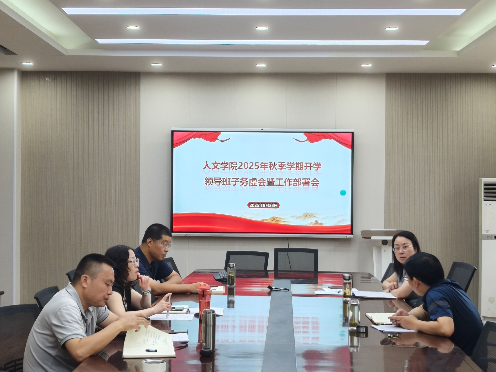 为深入贯彻落实学校暑期处科级干部专题培训班精神,进一步明确工作方向、凝聚奋进力量,统筹推进新学期各项工作,8月23日下午,人文社会科学学院在临潼校区人文楼会议室召开新学期工作部署会,学院全体班子成员参加会议,会议由学院院长陈莉霞主持。