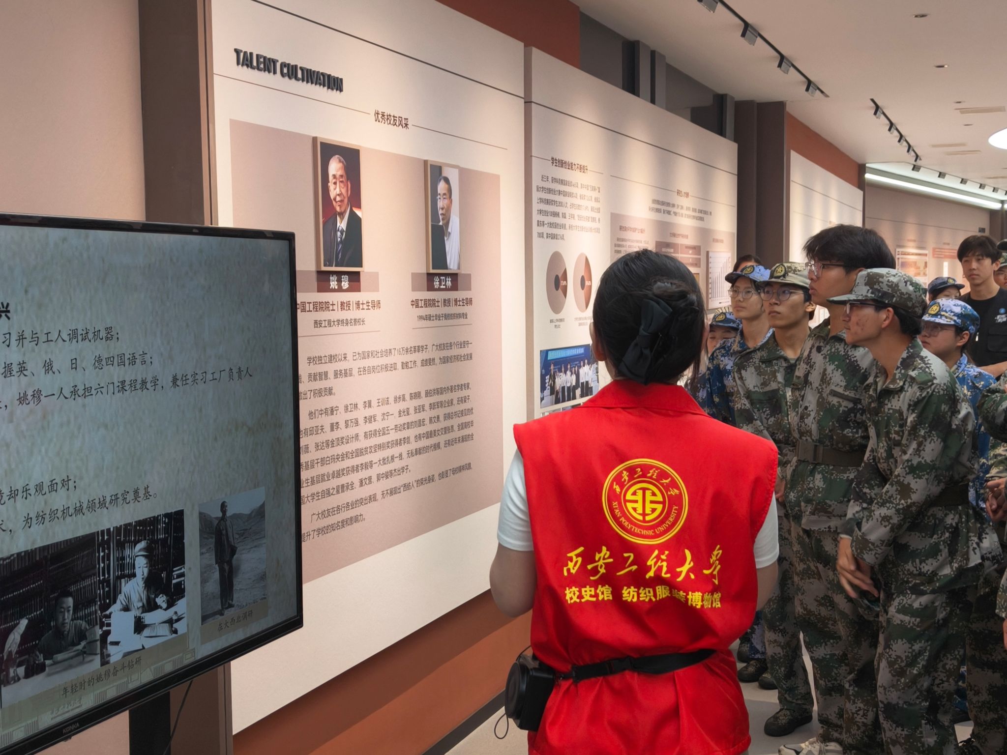 随后,校史馆讲解员带领新生走进校史馆,峥嵘岁月、精彩故事、人物事迹,让新生全方位了解了学校历史沿革;我校姚穆院士先进事迹宣讲团成员韩一冉深情讲述姚穆院士的感人事迹,激发了青年的爱国情怀和奋进斗志。