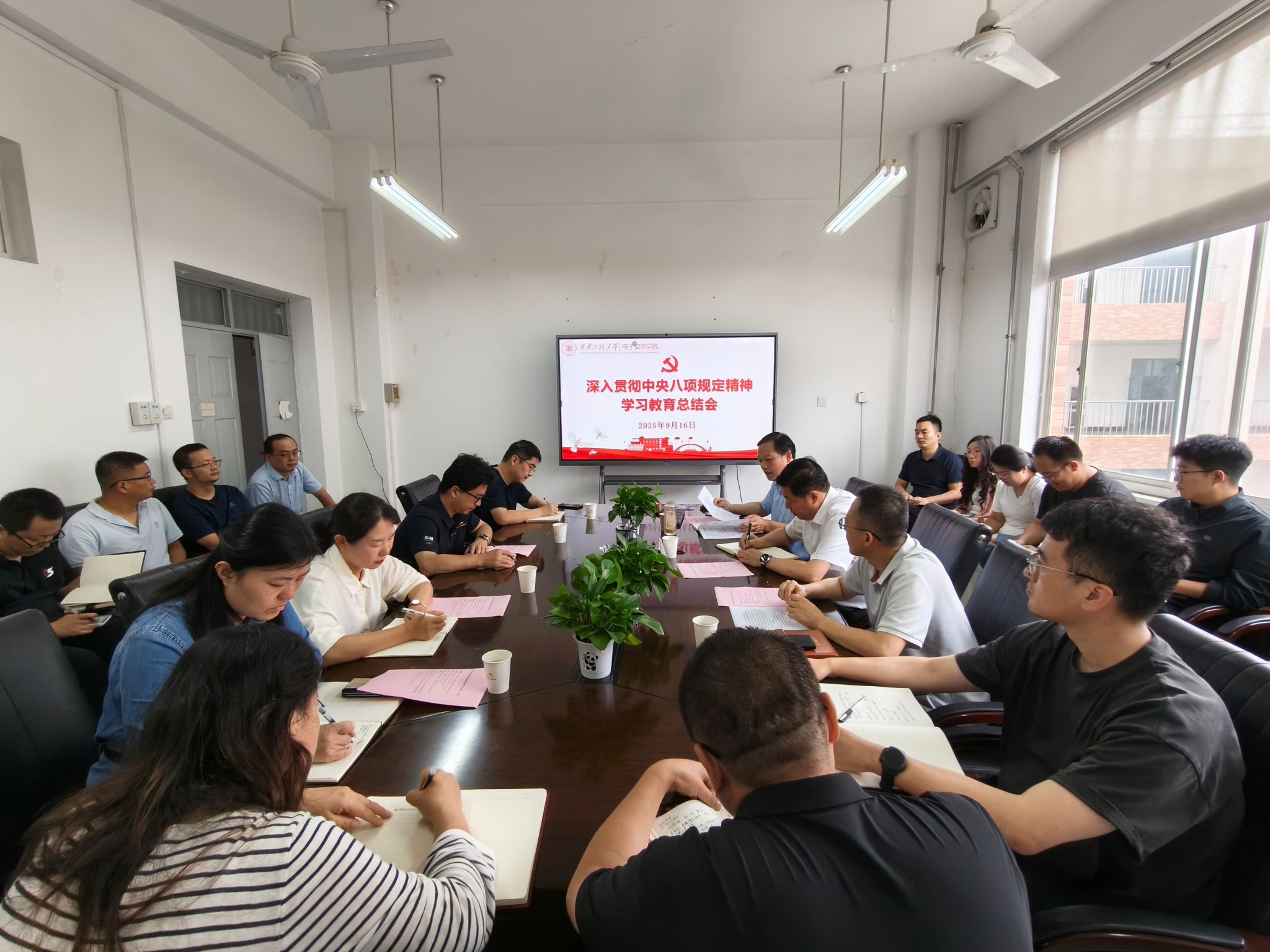 9月16日,电子信息学院党委在临潼校区召开深入贯彻中央八项规定精神学习教育总结会。校党委副书记殷永建到会指导,学院领导班子成员、党委委员、各党支部书记、系部办(中心)主任参加会议,会议由学院党委书记杨友谊主持。
