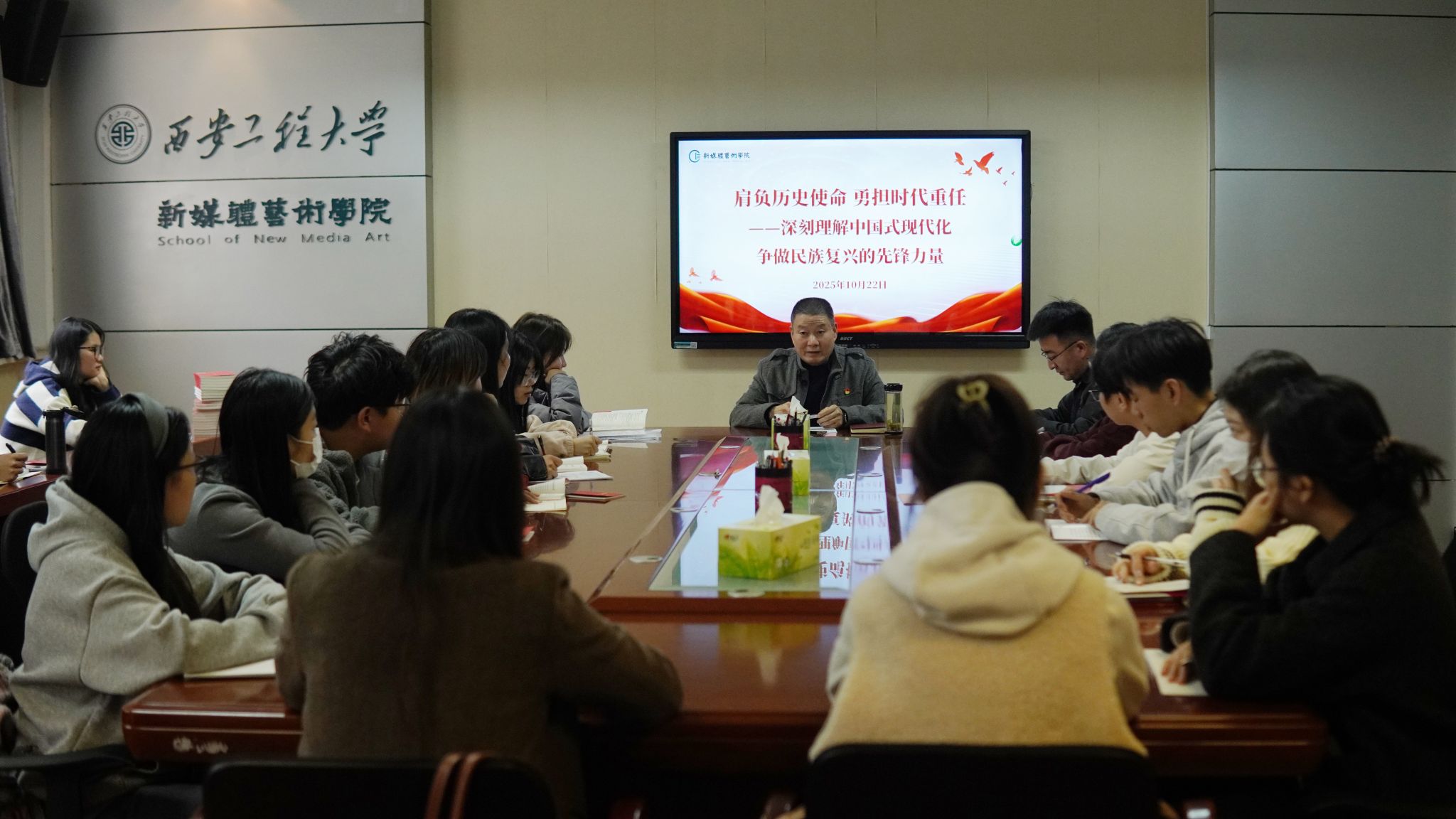 10月22日,新媒体艺术学院2025年第二期党课开班典礼暨党课第一讲活动在金花举行。学院党委书记张瑾,副院长姒晓霞、王晨仰,院长助理李德兵,各党支部书记及47名入党积极分子学员参会,典礼由学院党委副书记赵文熙主持。