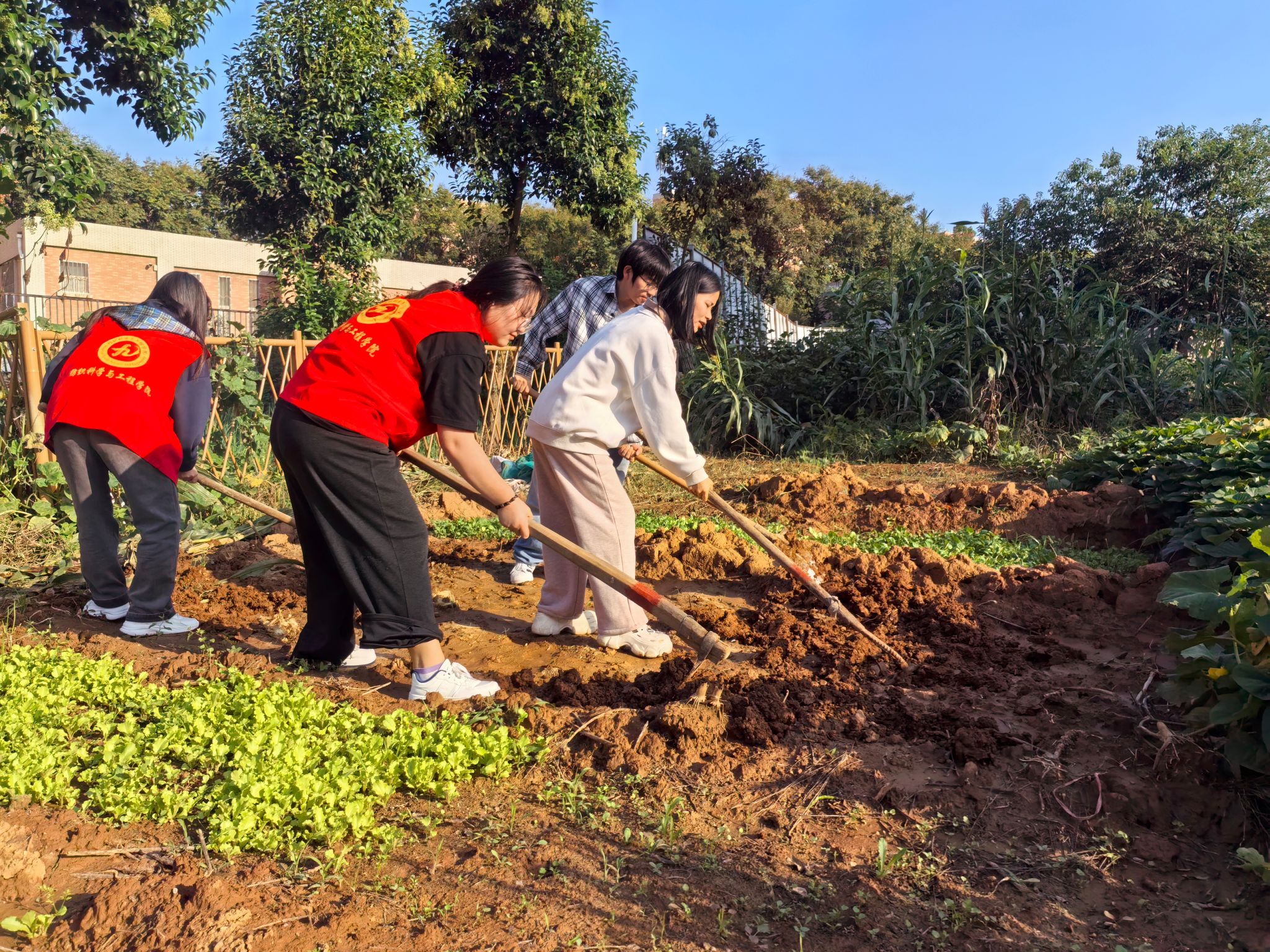以劳动为媒,以实践为笔。怀着对劳动实践的热忱,志愿者团队全程参与作物从破土而出到郁郁青青的完整生长周期。志愿者们在“耕读小园”共同规划地块布局、科学分配劳动任务,在挥洒汗水中凝聚协作力量,在收获硕果时体会付出的喜悦。沉浸式的劳作体验让同学们彻底转变对劳动的认知:劳动从不只是枯燥的付出,更是与自然对话、与自我对话的成长过程。它教会青年学子坚持的意义与责任的重量,让青春在汗水浇灌中绽放务实光彩,更在实践中锤炼了劳动任务所需的规划设计、实操执行及团队协作能力。