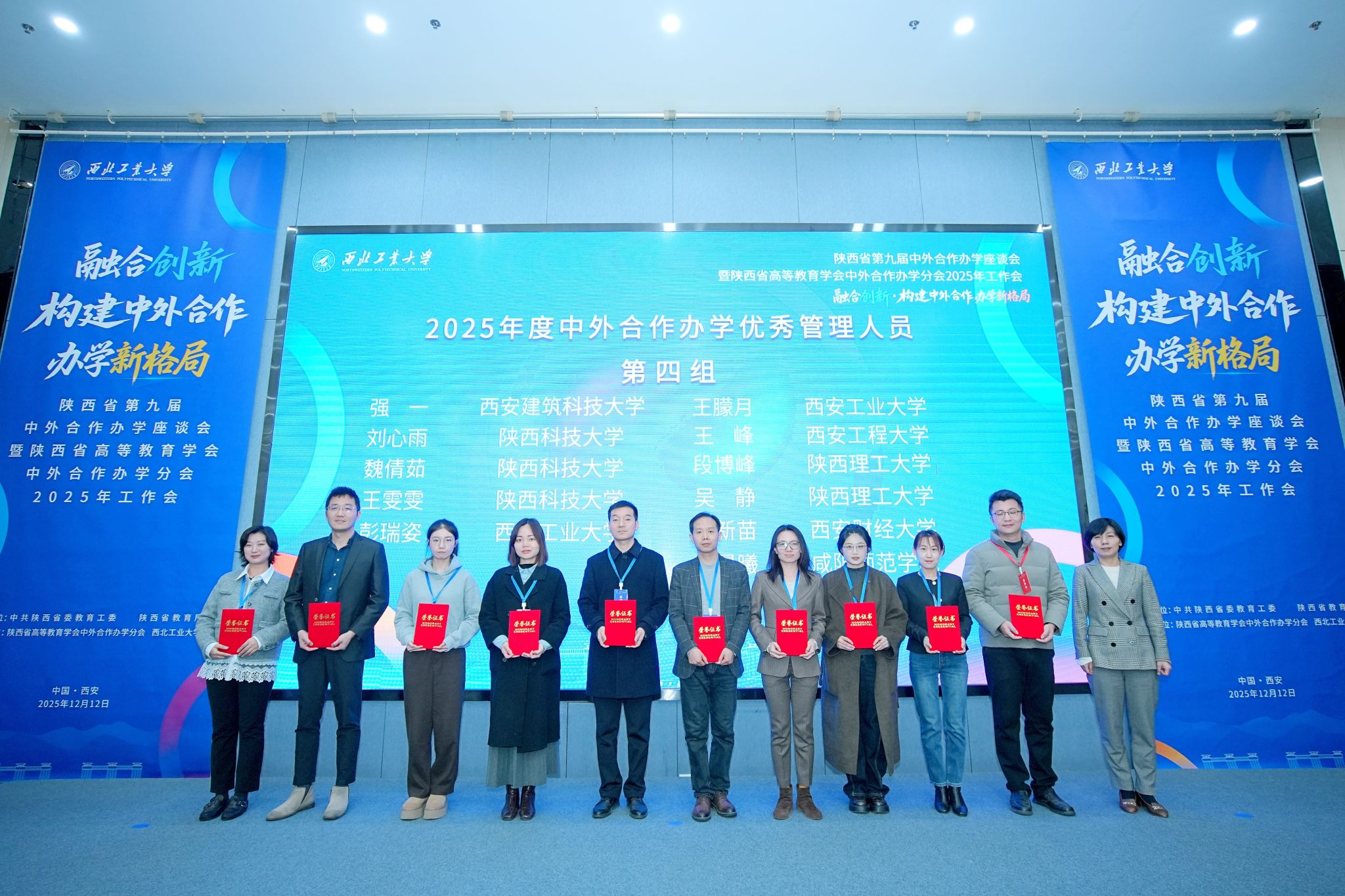 近日,陕西省第九届中外合作办学座谈会暨陕西省高等教育学会中外合作办学分会2025年工作会在西安召开。会议对2025年度全省中外合作办学优秀机构、项目及管理人员进行表彰,我校服装与艺术设计学院副院长王峰获评“2025年度陕西省中外合作办学优秀管理人员”并受到表彰。