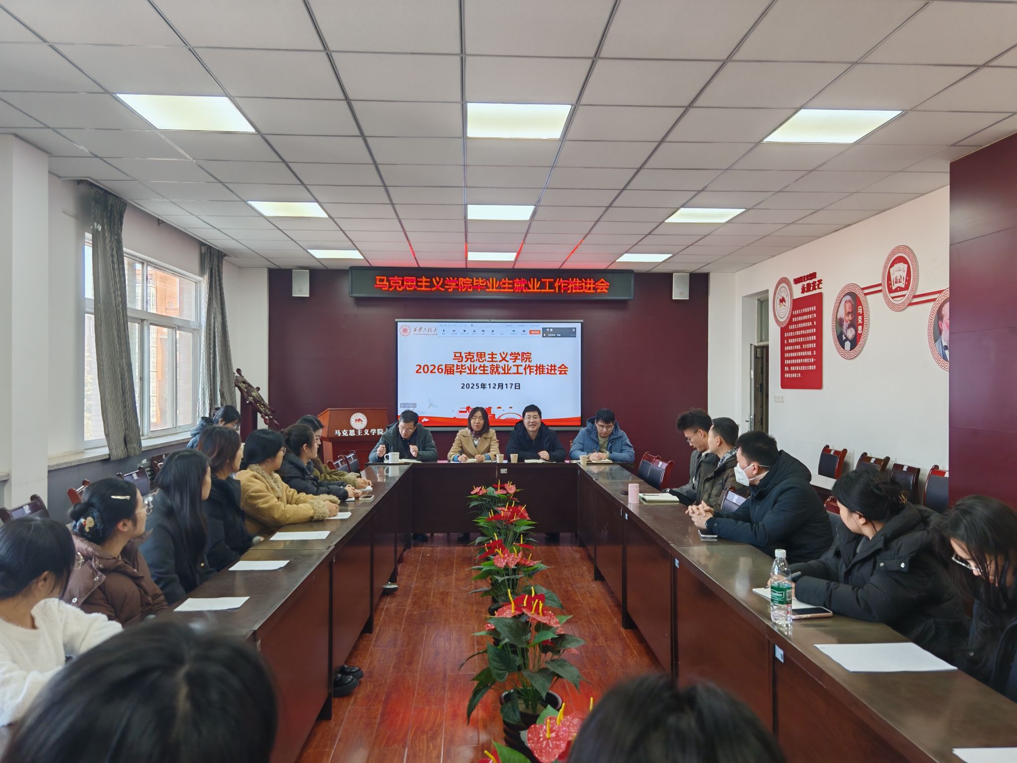 12月17日,马克思主义学院在临潼校区召开2026届研究生毕业生就业工作推进会。学院党委副书记傅博娜、副院长郭松、副院长屈旻,相关辅导员及全体毕业生参加会议。