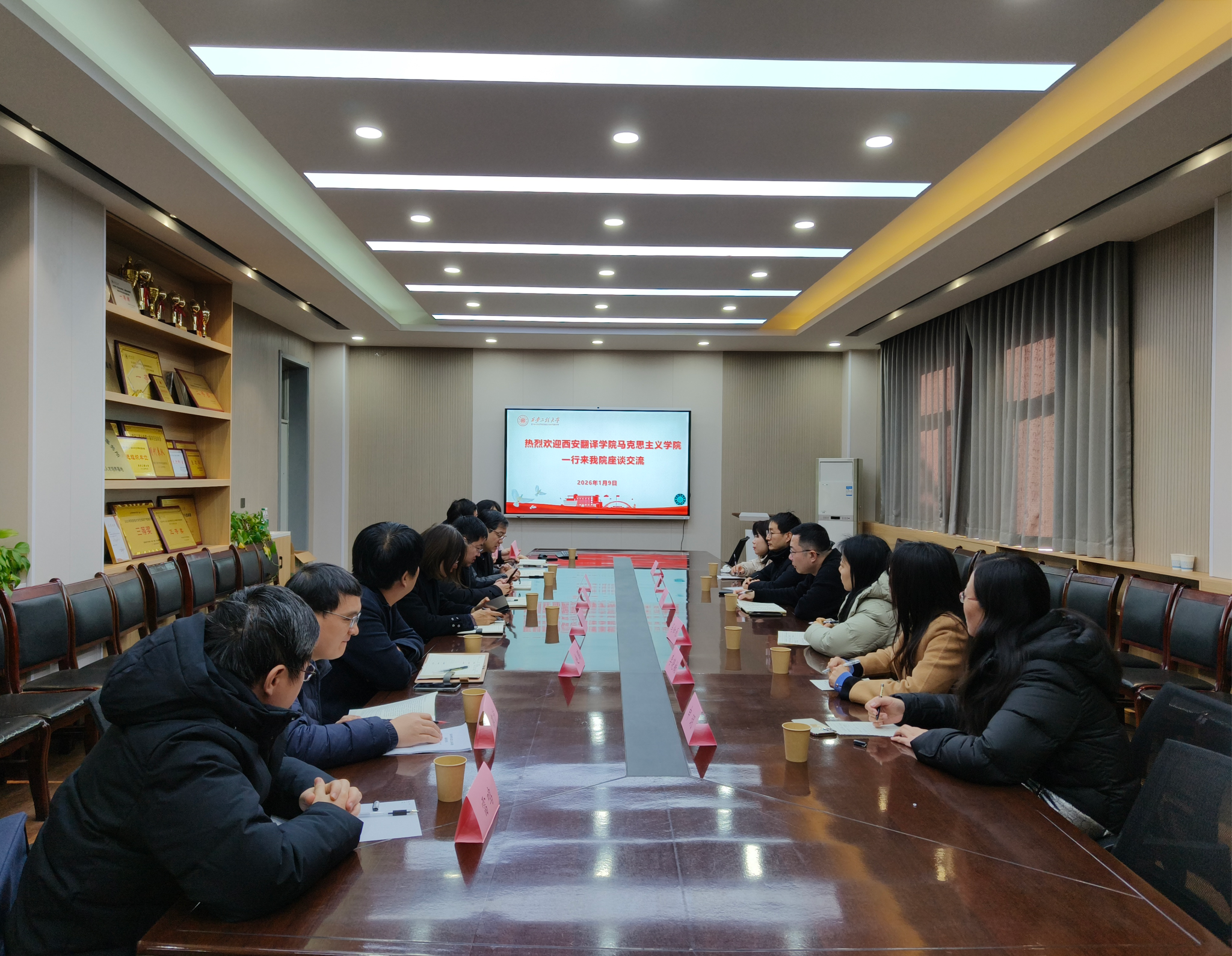 1月9日,西安翻译学院马克思主义学院院长郑璐一行来我校马克思主义学院开展座谈交流。学院领导班子成员、办公室主任及各教研室主任参会,与来访嘉宾深入研讨、共谋发展。