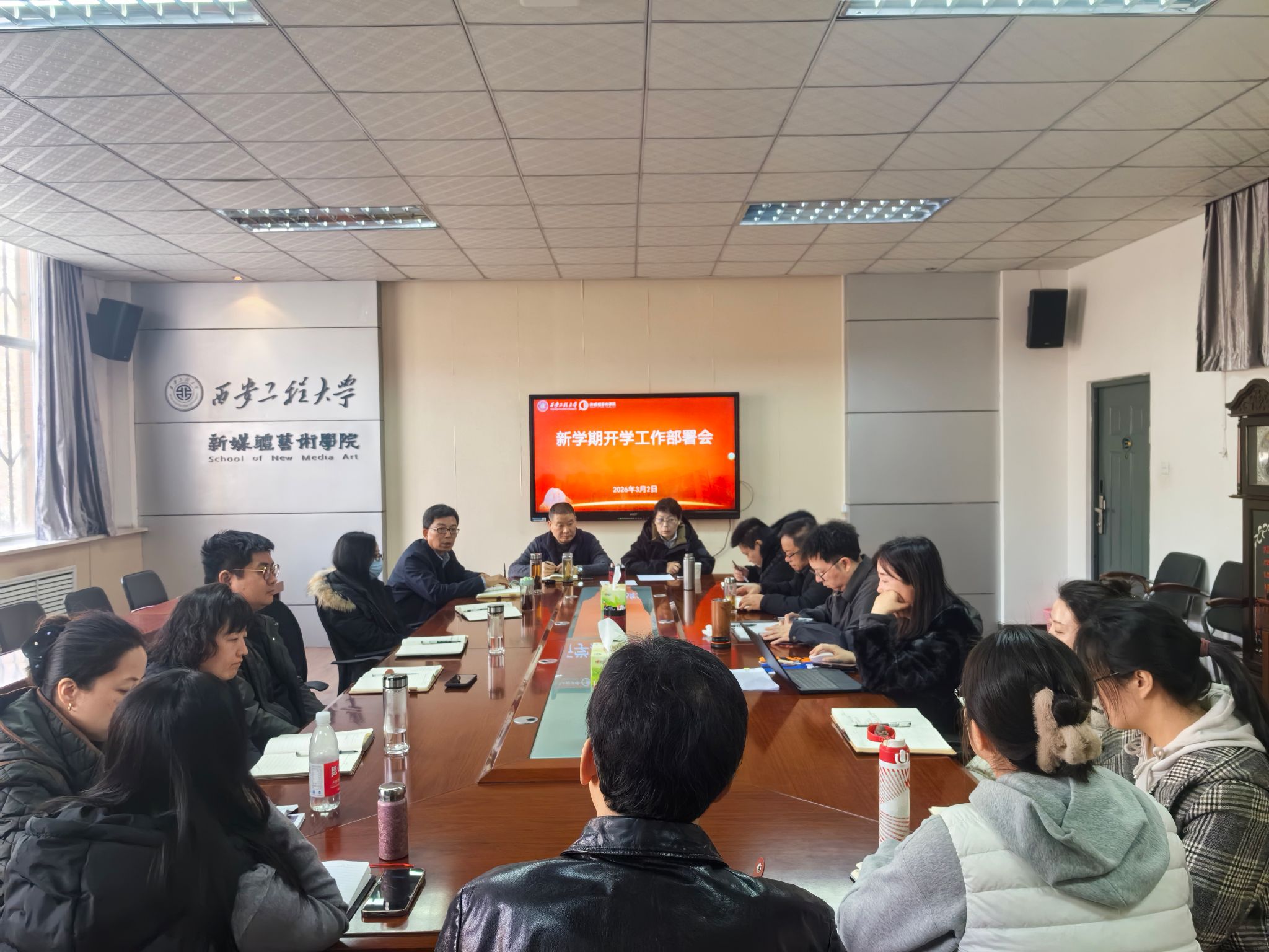3月2日,新媒体艺术学院在金花校区召开新学期开学工作部署会,全面统筹安排开学各项工作,明晰新学期发展思路与重点任务,为学院新学期平稳有序运行及高质量发展筑牢根基。学院领导班子、各系(中心、办)正副主任及相关工作人员参会,会议由院党委书记张瑾主持。