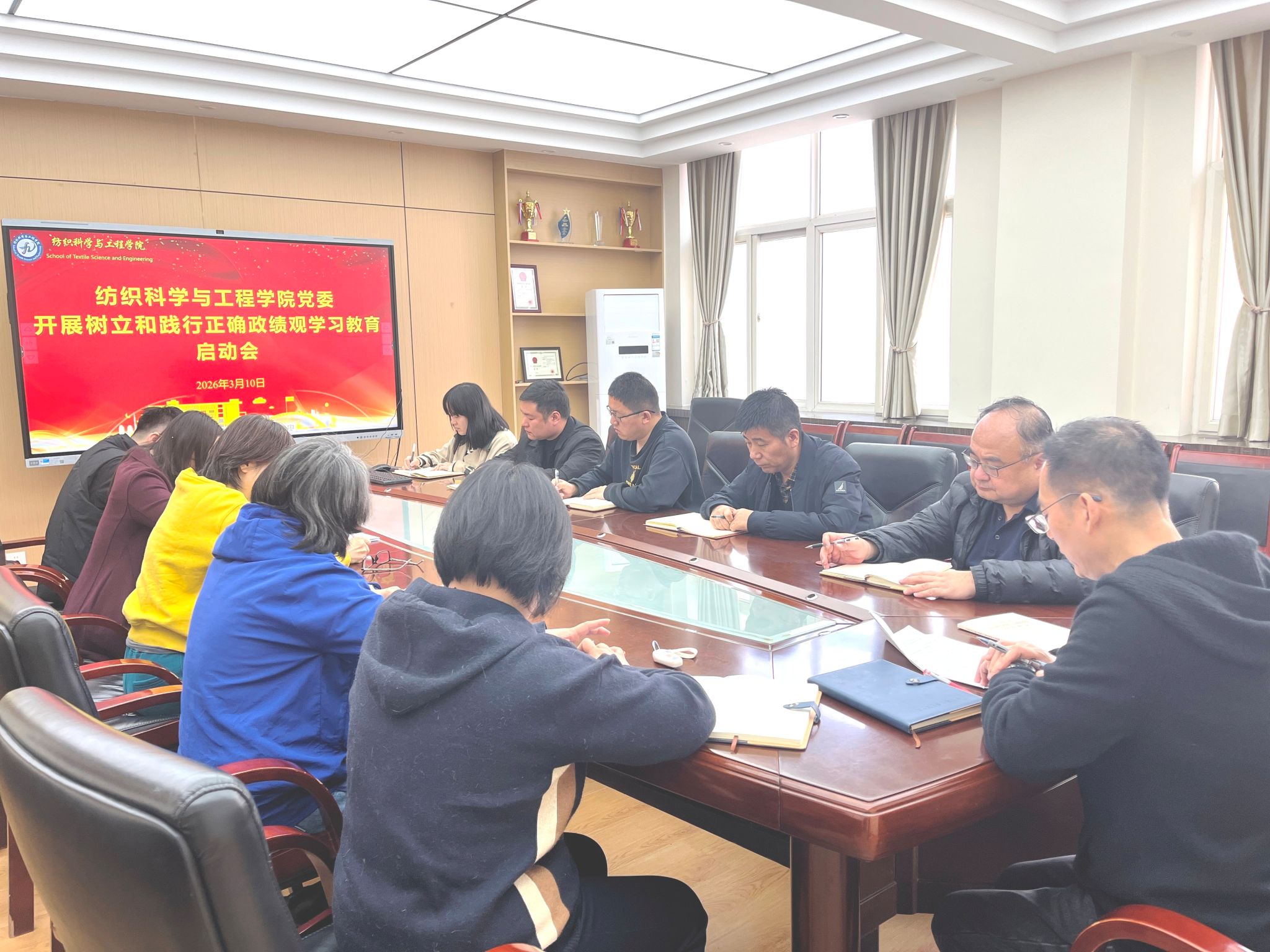 3月10日,纺织科学与工程学院党委在金花校区举行开展树立和践行正确政绩观学习教育启动会,学院党政领导班子、党支部书记代表、教师代表参加会议。会议由学院党委书记李伟主持。